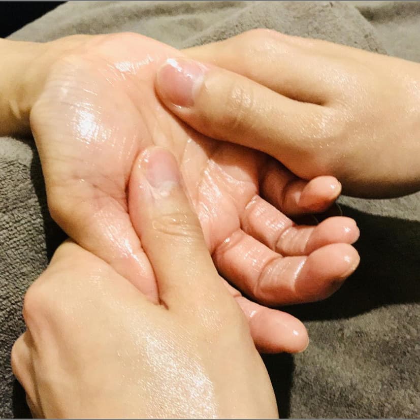 指先から、クリームを使ってじっくり丁寧にほぐしていきます。