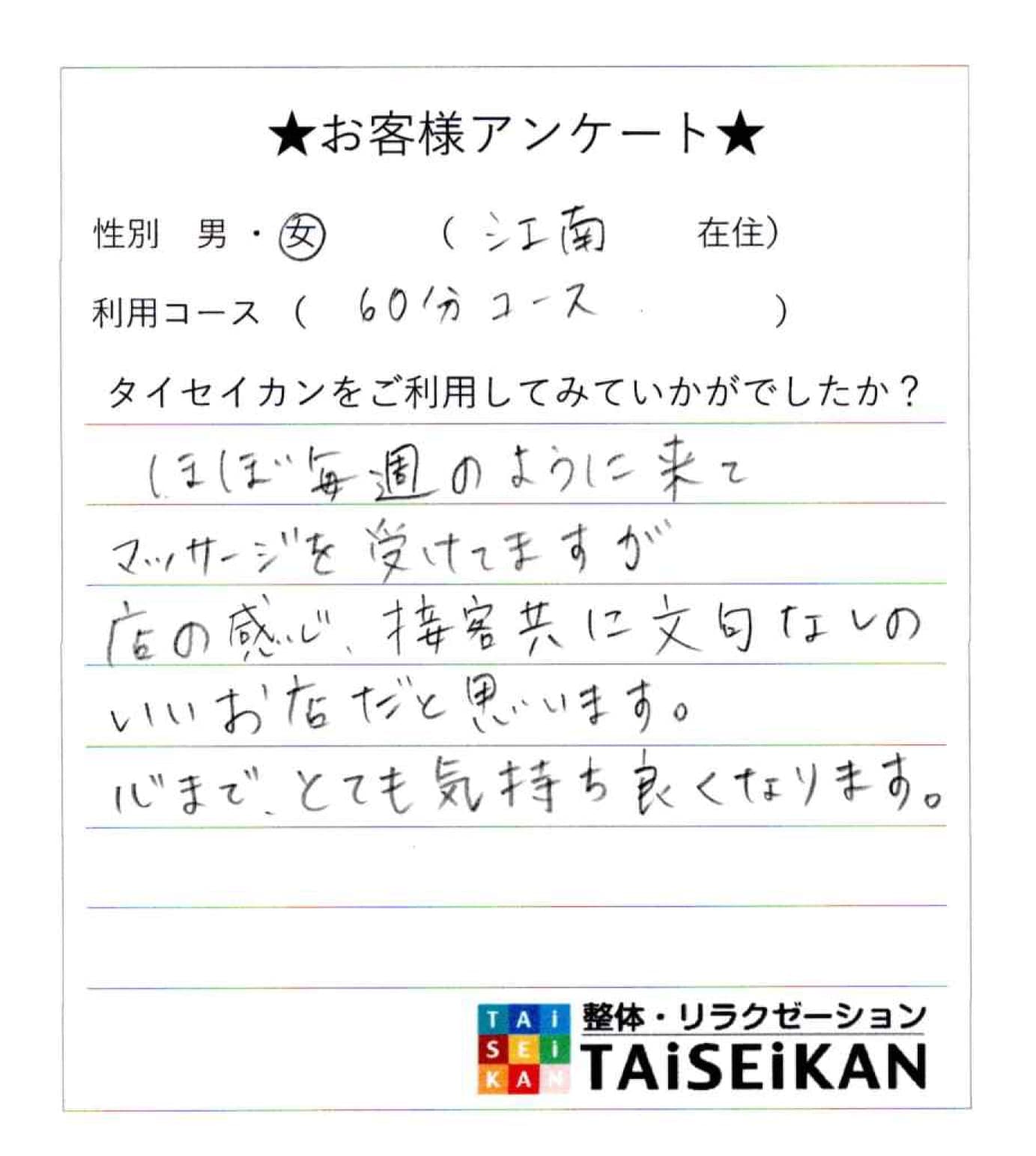 お客様から大変温かいお言葉を頂いており、皆様にもご紹介したいと思います。