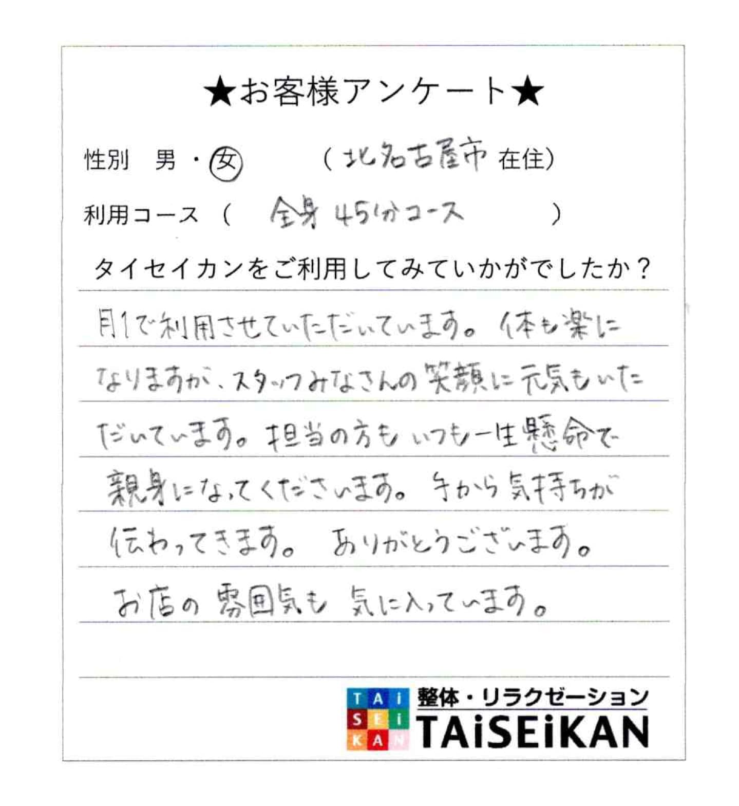 手書きのメッセージは弊社スタッフも励みになり、嬉しく思っています。